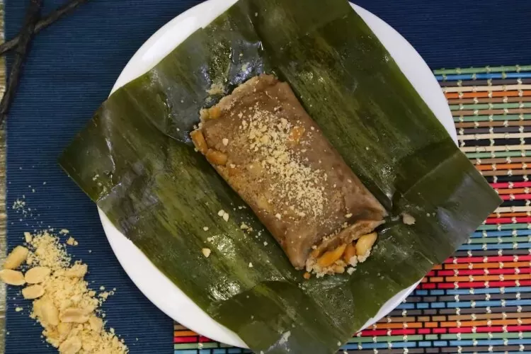 La préparation du Koba suit une recette simple mais méticuleuse. La pâte est composée de farine de riz, de purée de bananes bien mûres, et de cacahuètes finement concassées, le tout mélangé avec du sucre roux pour créer une base douce et onctueuse. Ce mélange est ensuite soigneusement enveloppé dans des feuilles de bananier fraîches, qui lui confèrent un parfum subtil et un goût authentique lors de la cuisson.